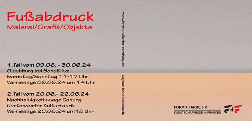 Die Bambergerin Barbara Winkler lässt Teetütchen sprechen, die sie auf geradezu meditative Weise zu einem Fußabdruck zusammenfügt, ein spielerischer Umgang mit unserem täglichen Abfall, und dennoch notwendig. Dies sind nur zwei Arbeiten von insgesamt 17 Künstlerinnen und Künstlern des Vereins Form + Farbe e. V. Kunstschaffende in Franken, die sich mit dem Thema Fußabdruck auseinandersetzten. Am Ende heißt es: Einfälle statt Abfälle, der kreative Umgang mit unseren Hinterlassenschaften, nicht Abfall, sondern Wertstoff!